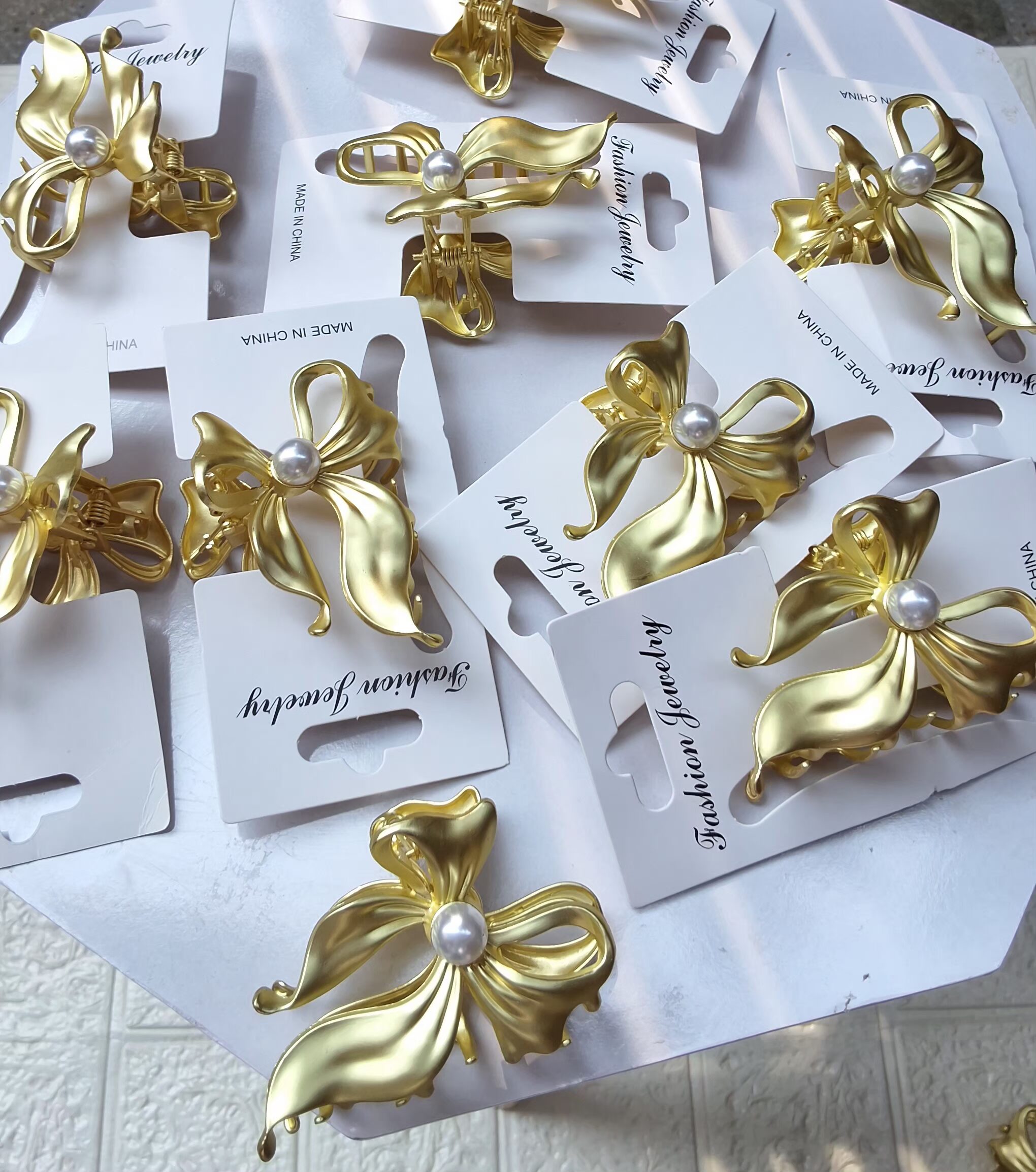 Anti Tarnish Pearl Bow claw